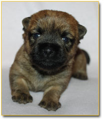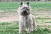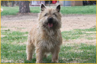 The most interesting and aesthetically pleasing of small breed dogs--the Cairn Terrier! In spite of their petite stature, they are extremely powerful, and exhibit little, if any fear in the presence of strangers. One of the greatest points of pride for the Cairn Terrier is its thick, rich, and vibrant coat, which is often described as long, course, and abundant. The cairn's colour varies from red, grey, cream, wheaten, or near-black, containing variations of comparable colours. The ears and muzzle must always be of darker colour in contrast to the rest of the coat.